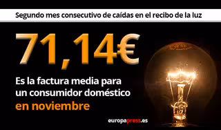 En concreto, la factura media para un consumidor doméstico este mes se ha situado en los 71,14 euros, unos 80 céntimos menos que en octubre. Para hacer un cálculo homogéneo se ha tenido en cuenta los 30 últimos días de octubre, ya que el mes de noviembre cuenta con 30 días.