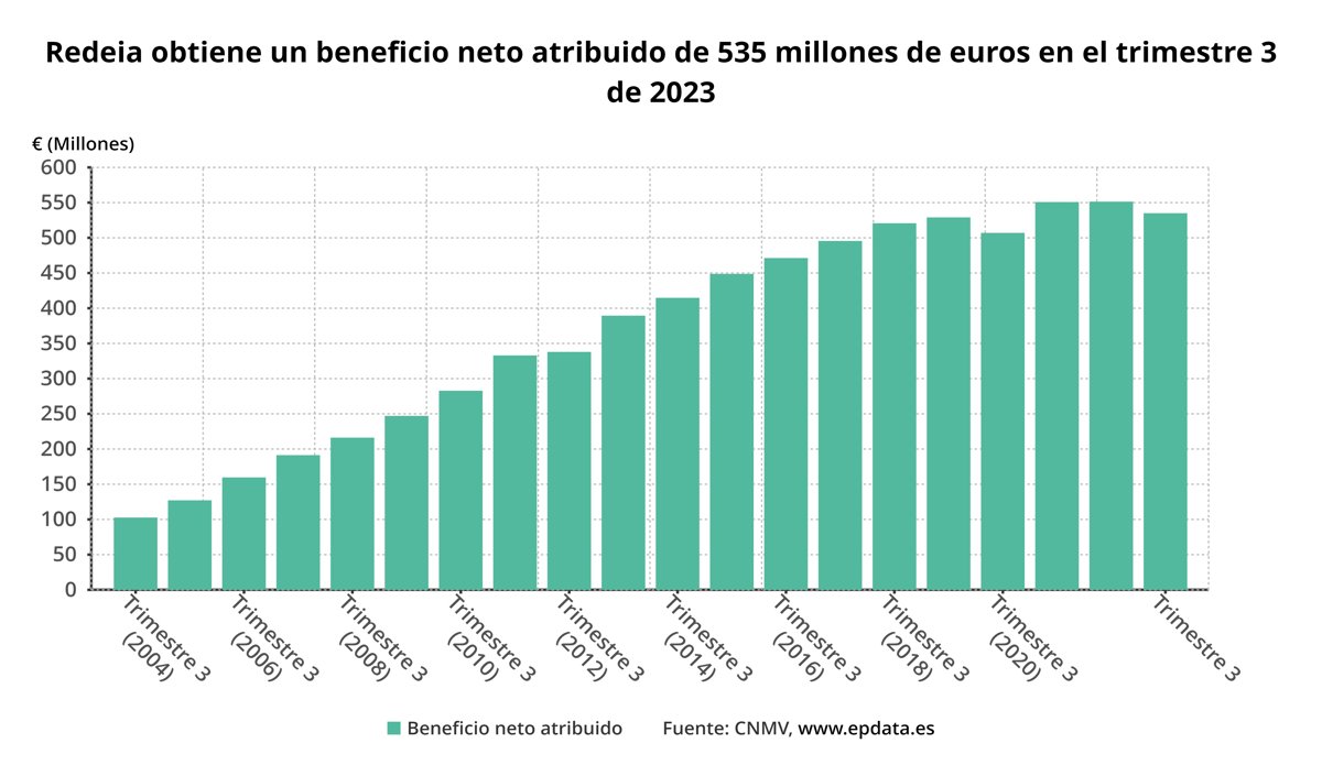Redeia registró un beneficio neto de 535,3 millones de euros en los nueve primeros meses del año, lo que supone una caída del 2,9% con respecto al mismo periodo de ejercicio anterior, informó la compañía, que ha elevado sus inversiones un 28% hasta septiembre, alcanzando los 621 millones de euros en lo que va de 2023.