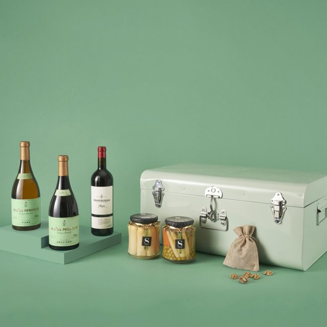 Por su parte, Bodegas Montecillo rinde homenaje a Rioja esta Navidad con un baúl gourmet de edición limitada 'Un pedacito de la mejor Rioja del mundo', para degustar y disfrutar en estas fechas los productos de esa tierra donde figura una botella de Viña Monty Graciano Reserva 2015, un Viña Monty Viura Reserva 2017, y un Montecillo Edición Limitada 2016 junto a la excepcional menestra riojana y yemas de espárrago de la empresa familiar riojana Conservas Serrano, que se completa con nueces cultivadas en nogales de Rioja Alta.
