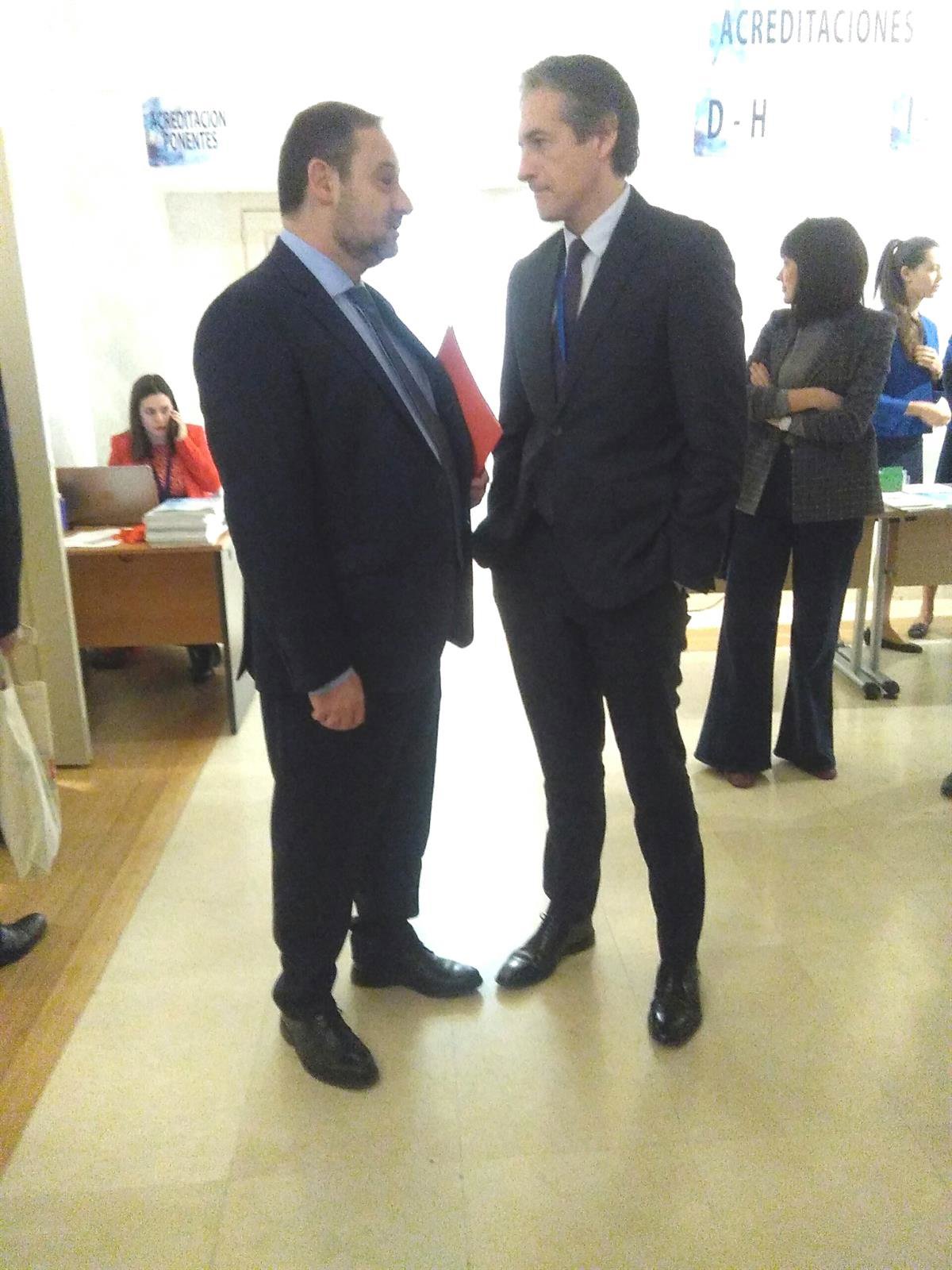 El ministro de Transportes, José Luis Ábalo, conversa con el ministro de Fomento Íñigo de la Serna tras la inauguración del VIII Congreso de Ingeniería Civil - EUROPA PRESS