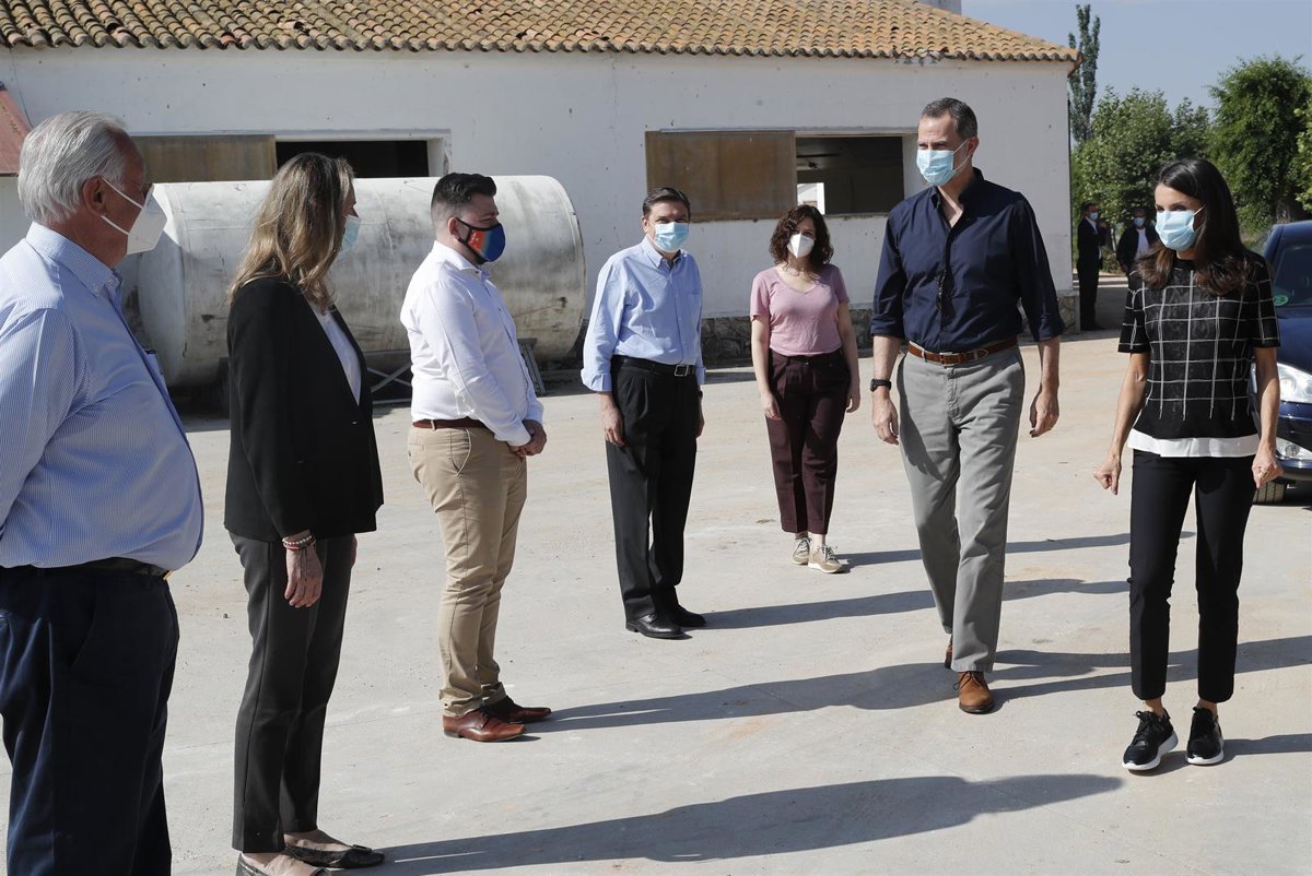 Durante la visita, los monarcas han estado acompañados por la presidenta de la Comunidad de Madrid, Isabel Díaz Ayuso; el ministro de Agricultura, Pesca y Alimentación, Luis Planas; el alcalde de San Martín De la Vega, Rafael Martínez y la consejera de Medio Ambiente, Ordenación del Territorio y Sostenibilidad de la Comunidad de Madrid, Paloma Martín.