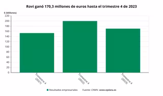 Rovi obtuvo un beneficio neto de 170,3 millones de euros en 2023, cifra un 15% inferior a las ganancias que registró la compañía en 2022, que rozaron los 200 millones de euros, según ha informado este martes la farmacéutica a la Comisión Nacional del Mercado de Valores (CNMV).