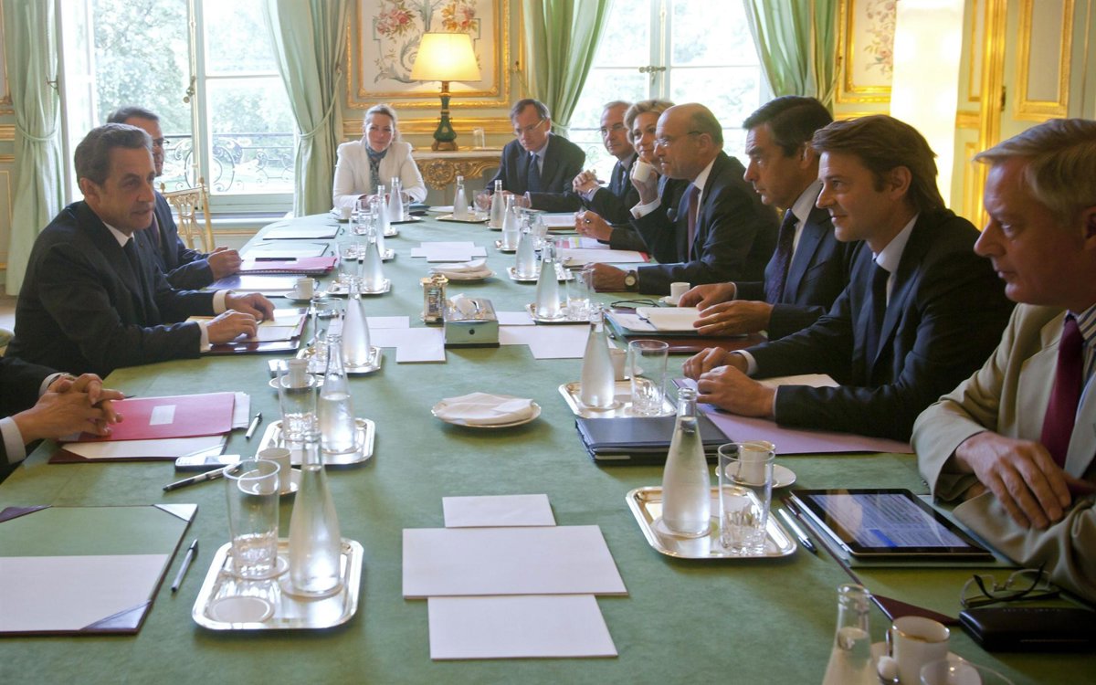 A la reunión de trabajo sobre la situación económica y financiera presidida por Sarkozy en el Palacio del Eliseo han acudido el primer ministro galo, Francois Fillon, y los ministros de Asuntos Exteriores, Alain Juppé; Economía, Finanzas e Industria, Francois Baroin; Presupuesto, Cuentas Públicas y Reformas del Estado, Valerie Precrese, y Asuntos Europeos, Jean Leonetti, así como el gobernador del Banco Central de Francia, Christian Noyer.