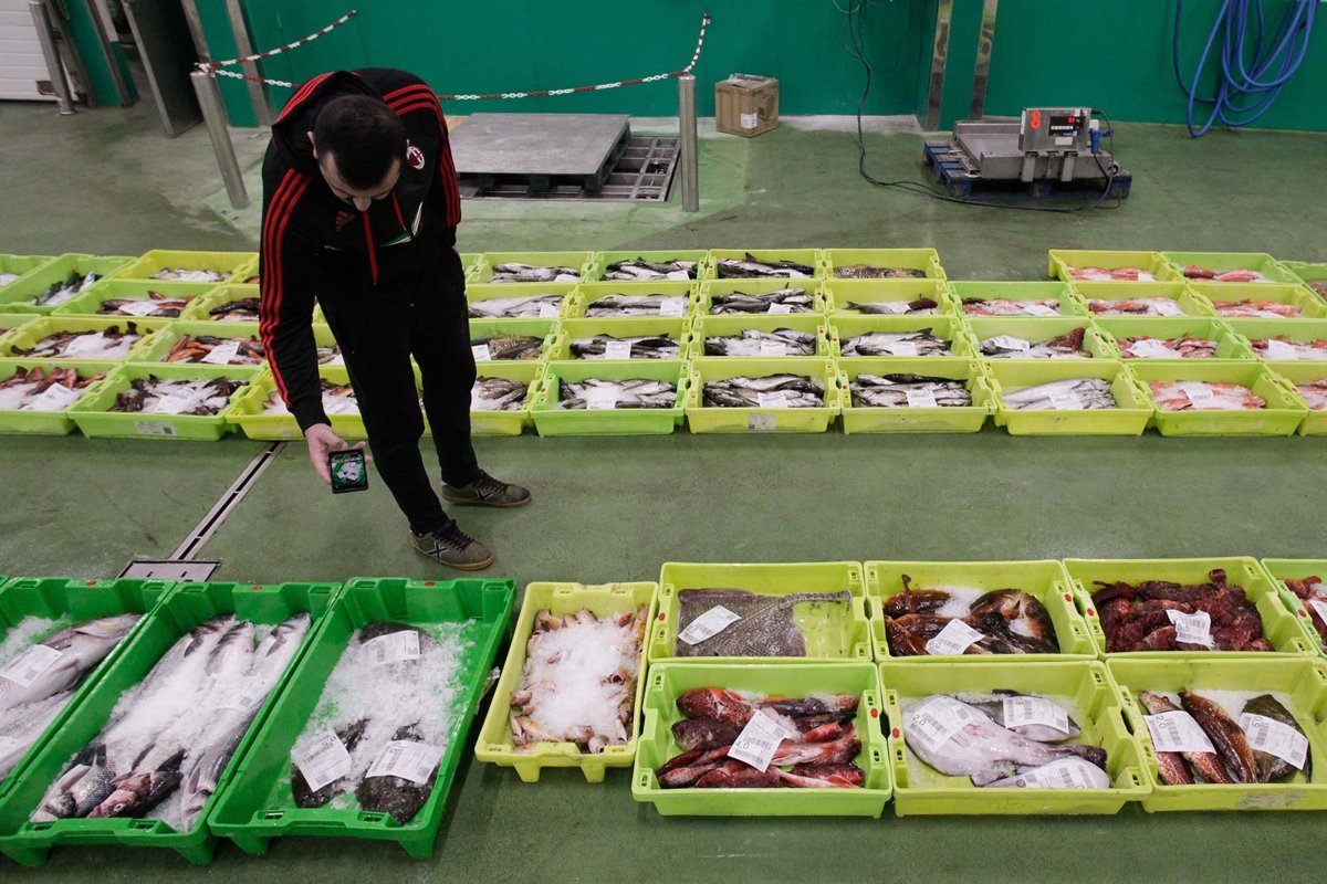 Archivo - Un hombre saca unas fotos a una caja con marisco en la lonja de Burela, a 15 de diciembre de 2022, en Burela, Lugo, Galicia, (España). - Carlos Castro - Europa Press - Archivo