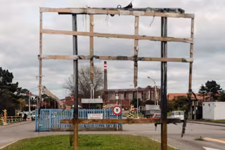 Vista de la fábrica de Alcoa a través de una pancarta quemada, en San Cibrao, un día después de que los trabajadores alcanzaran un acuerdo con la empresa, a 29 de diciembre de 2021, en San Cibrao, Cervo, Lugo - Carlos Castro - Europa Press