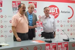 Los secretarios Generales de UGT, CCOO y USO, Justo Rodríguez Braga, Antonio Pino y Francisco Baragaño, respectivamente han recordado en una rueda de prensa en Oviedo que la manifestación se comenzará a las 19.00 en la Avenida de Galicia.