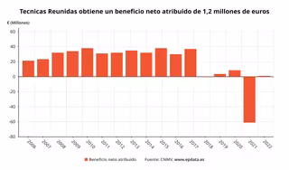 Evolución del beneficio neto de Técnicas Reunidos en los primeros trimestres de cada año - EPDATA