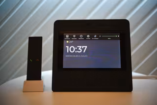 Movistar Home tiene una pantalla de ocho pulgadas y una cámara de alta sensibilidad para hablar incluso en horario nocturno. Además, cuenta con interacción natural con procesador Intel Atom y tecnologías de voz de dicha compañía y permite un "control total de la privacidad" al poder desconectar la cámara y el micrófono.
