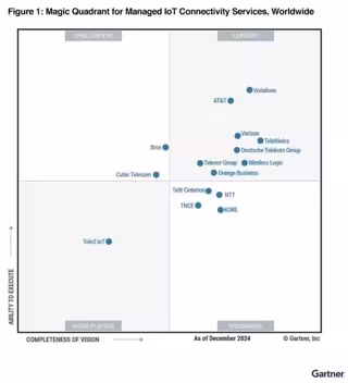 En el grupo de 'lideres' del 'Cuadrante Mágico' de Gartner de servicios gestionados de IoT también figuran Vodafone, Deutsche Telekom, Orange Business, Verizon, Wireless Logic, Telenor y AT&T.