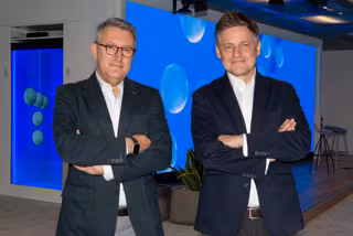 Archivo - De izquierda a derecha: Juan Luis Moreno, Chief Innovation Officer en The Valley, y Javier Vizcaíno, responsable del área de Pymes en Telefónica España. - TELEFÓNICA - Archivo