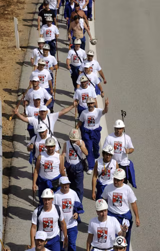 La organización minera ha preparado también una infraestructura para recibir "fondos solidarios" con los que pagar también el coste de mover a 180 mineros a pie hasta Madrid durante 20 días, desde mañana viernes 22 de junio y hasta la llegada a Madrid el día 11 de julio.