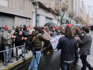 La concentración ha comenzado minutos antes de las 10.00 horas de este martes, cuando estaba previsto el arranque del pleno extraordinario de la Cámara para el debate y aprobación de los presupuestos de la Comunidad Autónoma para este año 2013, y se ha prolongado hasta las 12.00 horas, aproximadamente, cuando en el interior del Pazo do Hórreo ya se había reanudado el pleno después de su suspensión durante media hora por las protestas registradas en la tribuna de invitados.