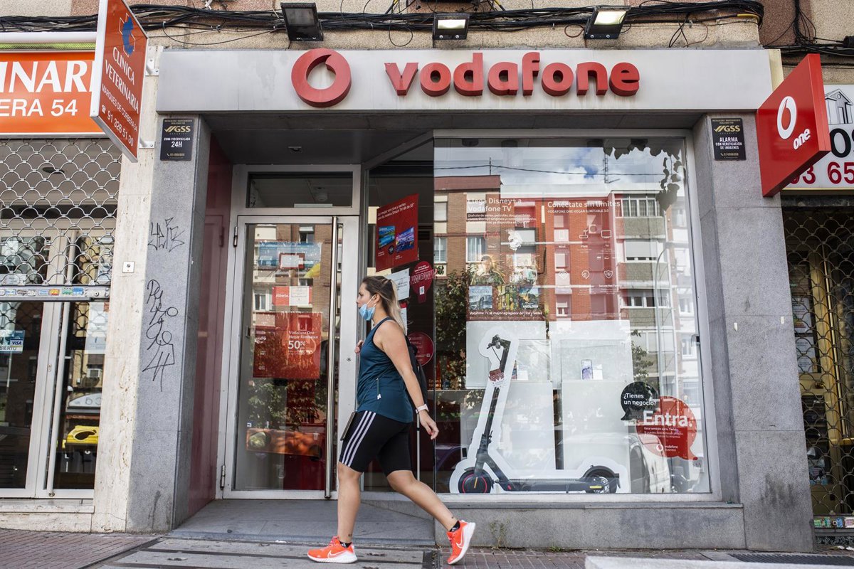 Una persona pasa delante de una tienda de Vodafone en Madrid - Alejandro Martínez Vélez - Europa Press