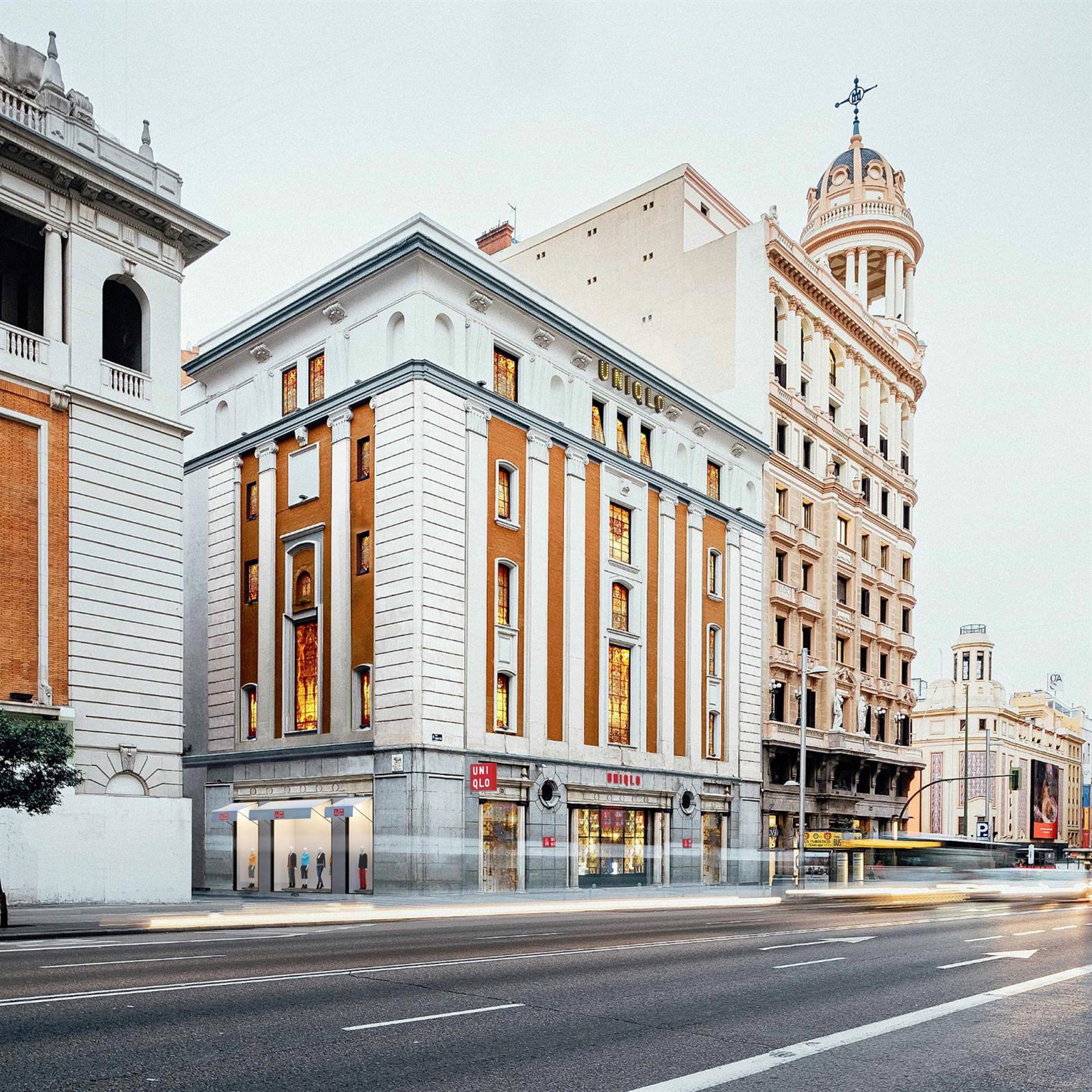 Ubicada en el emblemático edificio de Gran Vía 37, que en sus orígenes albergó el conocido cine Avenida y la sala de espectáculos Pasapoga, la nueva tienda de Uniqlo presentará la reconocible arquitectura de la marca, caracterizada por combinar elementos simples y modernos con elementos históricos del edificio que ocupa, como las lámparas de araña, los espejos, las escaleras de mármol y los techos artesonados del club Pasapoga.