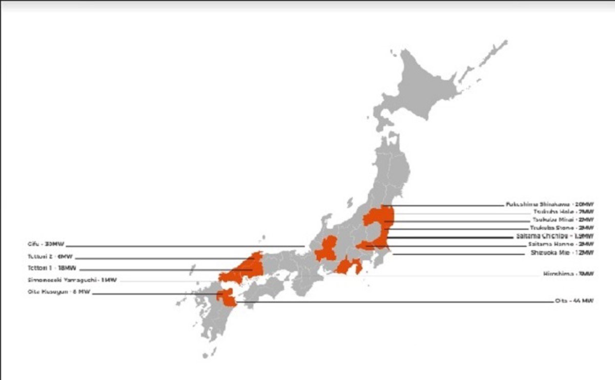 Los proyectos se llevarán a cabo en Hokkaido Otaru Momonal (2,3 MW), Kagawa Takamatsu Nishikasuga (1,1 MW), Kagoshima Sendai (3,6 MW) y Tottori Yonago Hikona (2,5 MW).