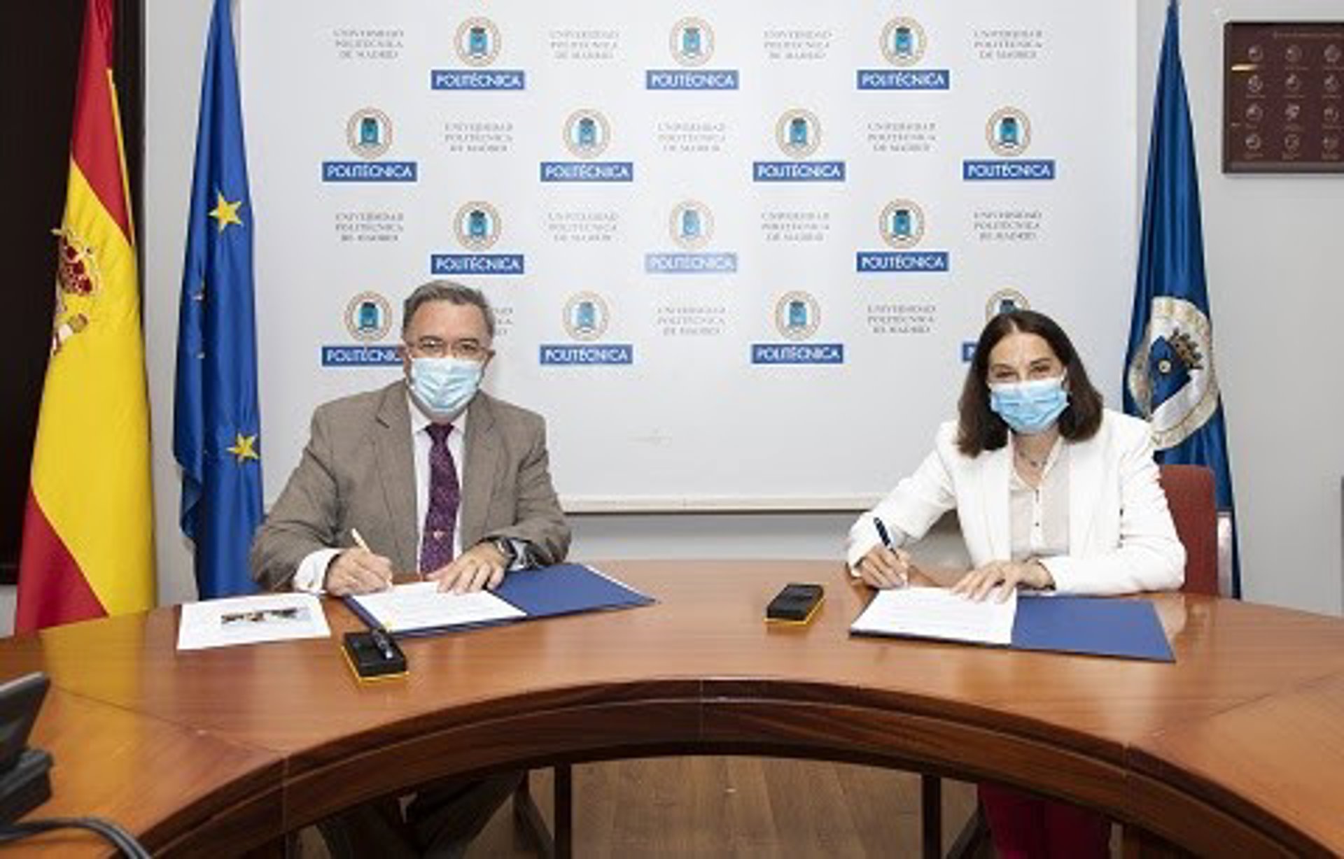 El Rector de la Universidad Politécnica de Madrid (UPM), Guillermo Cisneros, y la directora del Territorio Centro de Telefónica, Beatriz Herranz - UPM