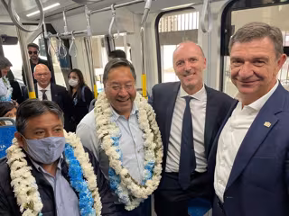 Urbas ha inaugurado junto al presidente de Bolivia, Luis Arce, el 'Tren Metropolitano de Cochabamba', el primer tren eléctrico del país latinoamericano, que se enmarca en un megaproyecto ferroviario de la compañía con un presupuesto de casi 450 millones de dólares (449 millones de euros al cambio actual).
