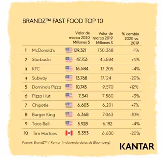 Infografía del valor de las marcas de 'fast food' en 2020 - KANTAR