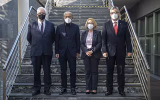 Archivo - Galo Gutiérrez, director general de Industria y PYME; Javier López Marcano, consejero de Industria; Eva Novoa, directora general de SOERMAR, y Juan Luis Sánchez, presidente del Clúster MarCA. - CLÚSTER MARCA - Archivo