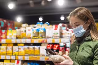 Imagen de una mujer con mascarilla en un supermercado. - AYUNTAMIENTO DE LAS ROZAS