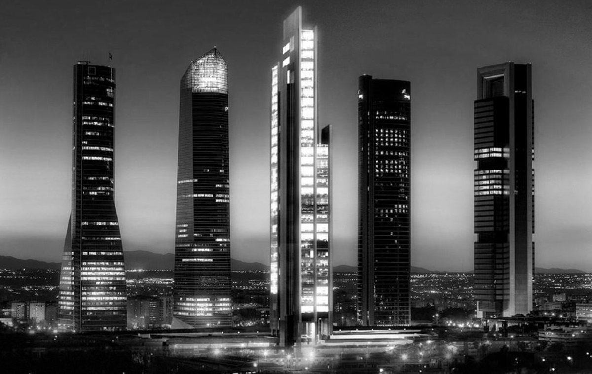 Las otras tres torres que conforman el complejo de rascacielos del Norte de Madrid son propiedad de Mutua Madrileña, Testa (Merlín) y Bankia.