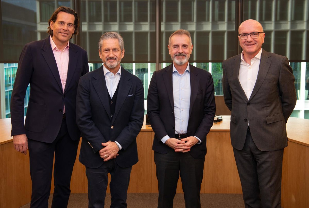Archivo - De izquierda a derecha: el consejero delegado de VMO2, Lutz Schüler, el consejero delegado de Liberty Global, Mike Fries, el presidente ejecutivo de Telefónica, Marc Murtra, y el consejero delegado de Telefónica, Ángel Vilá. - TELEFÓNICA - Archivo