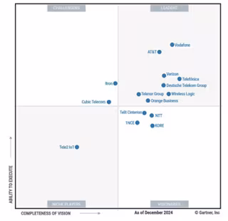 En el grupo de 'lideres' del 'Cuadrante Mágico' de Gartner de servicios gestionados de IoT también figuran Telefónica, Deutsche Telekom, Orange Business, Verizon, Wireless Logic, Telenor y AT&T.