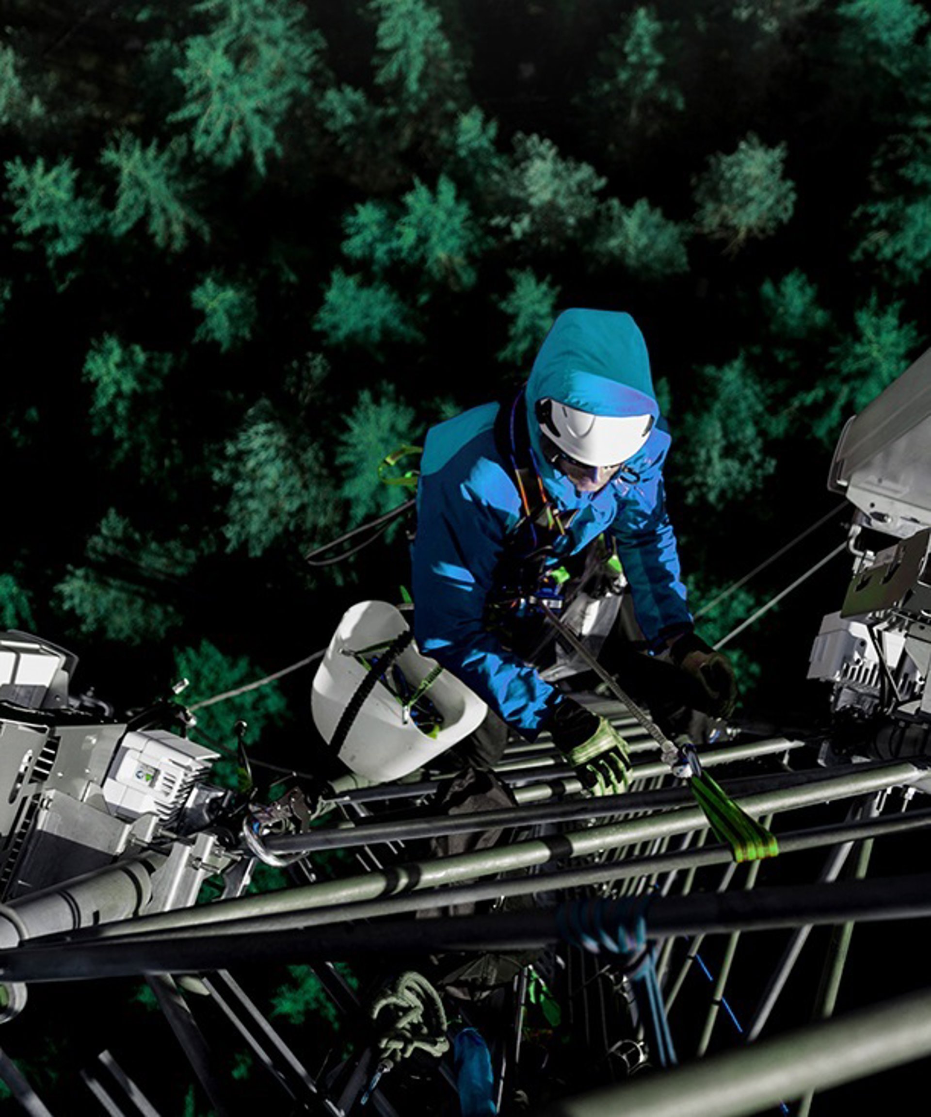 Archivo - Un operario en una torre de telecomunicaciones - VANTAGE TOWERS - Archivo