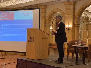 Ante más de setenta representantes del sector a nivel mundial, el consejero y socio de Air City Olivier Poncet ha expuesto las características del nuevo aeropuerto comercial que tendría su base sobre la ampliación del actual Aeródromo de Casarrubios.