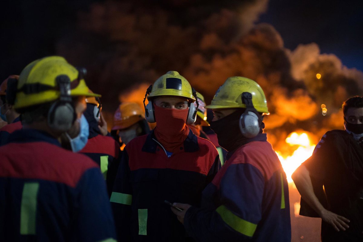 Manifestantes durante una concentración nocturna convocada por el comité de Alcoa San Cibrao, en el entorno de la fábrica de San Cibrao, cortan el acceso a la fábrica en Lugo, Galicia (España), a 30 de junio - carlos Castro/Europa Press