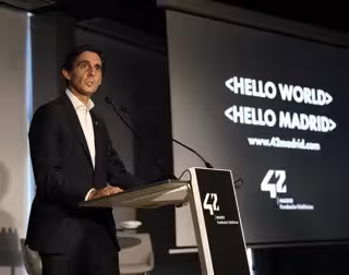 El presidente ejecutivo de Telefónica, José María Álvarez-Pallete durante su intervención en el acto inaugural de 42 Madrid, la nueva escuela de programación de la Fundación Telefónica - Marta Fernández - Europa Press - Archivo