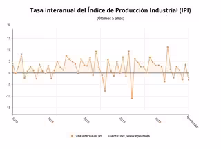 Corregida de efectos estacionales y de calendario, la producción industrial descendió un 2,6% respecto a noviembre de 2017, tasa 3,3 puntos inferior a la de octubre y su mayor retroceso interanual desde mayo de 2013.