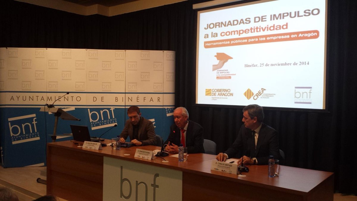 El consejero de Economía y Empleo, Francisco Bono, ha inaugurado este martes en Binéfar, la tercera ronda de las Jornadas de Impulso a la Competitividad, y en su intervención ha destacado que "esta iniciativa, aquí siempre demuestra su gran empuje".