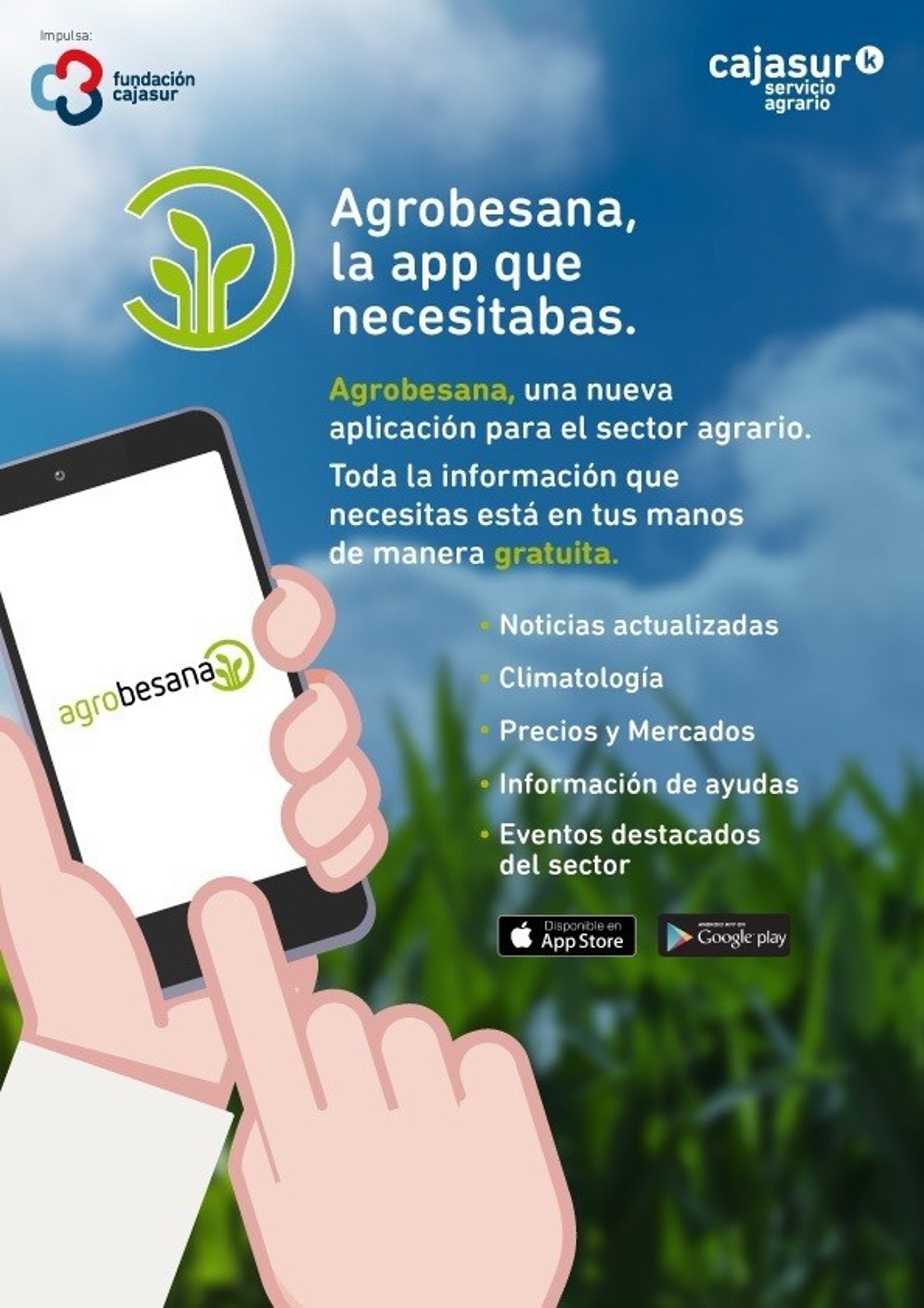 El Servicio Agrario de Cajasur, gracias a la ayuda de la Fundación Cajasur, ha puesto en marcha una aplicación móvil de agricultura, Agrobesana, con el fin de reducir la brecha digital existente en el sector agroalimentario, como una apuesta por los jóvenes empresarios y para convertir el uso de esta aplicación en el paso definitivo hacia la introducción en el mundo digital del sector primario.