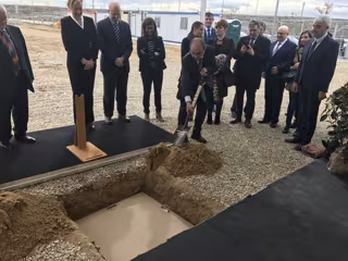 Al acto han asistido el presidente del Gobierno de Aragón, Javier Lambán, la consejera de Economía, Industria y Empleo, Marta Gastón, el consejero delegado de Padesa, José Ramón Centelles, el director general de Casa Matachín, David Botaya, y el ingeniero y responsable del proyecto, Miguel Ángel Añaños, quienes han participado en el acto de colocación de la primera piedra, una cámara del tiempo con algunos objetos del momento presente para las futuras generaciones.