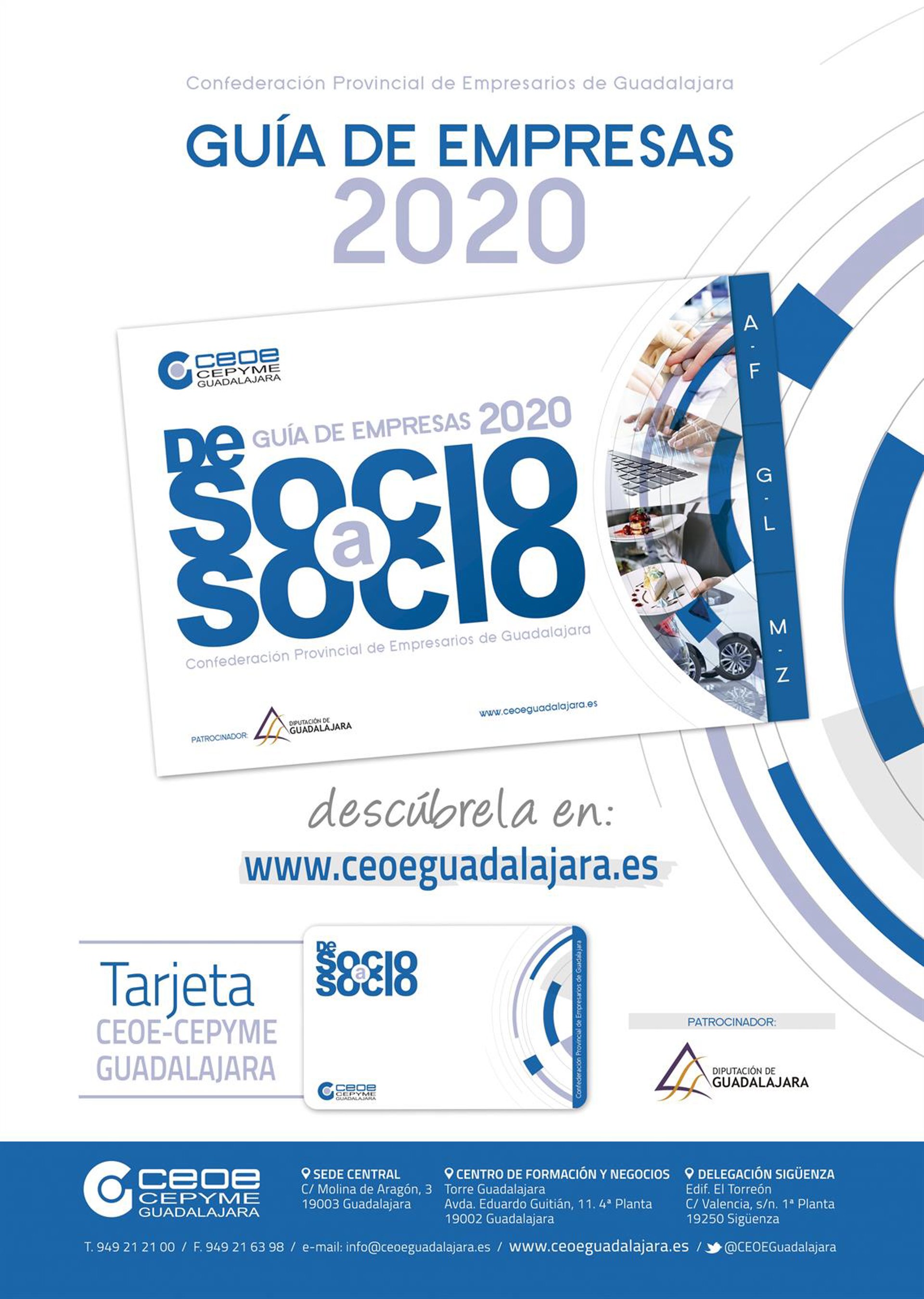 CEOE-CEPYME Guadalajara, junto con la Diputación de Guadalajara, han lanzado la décimotercera edición de la guía 'De socio a socio', en la que han participado 490 empresas de 46 municipios diferentes, siendo Guadalajara capital la más numerosa con 282.