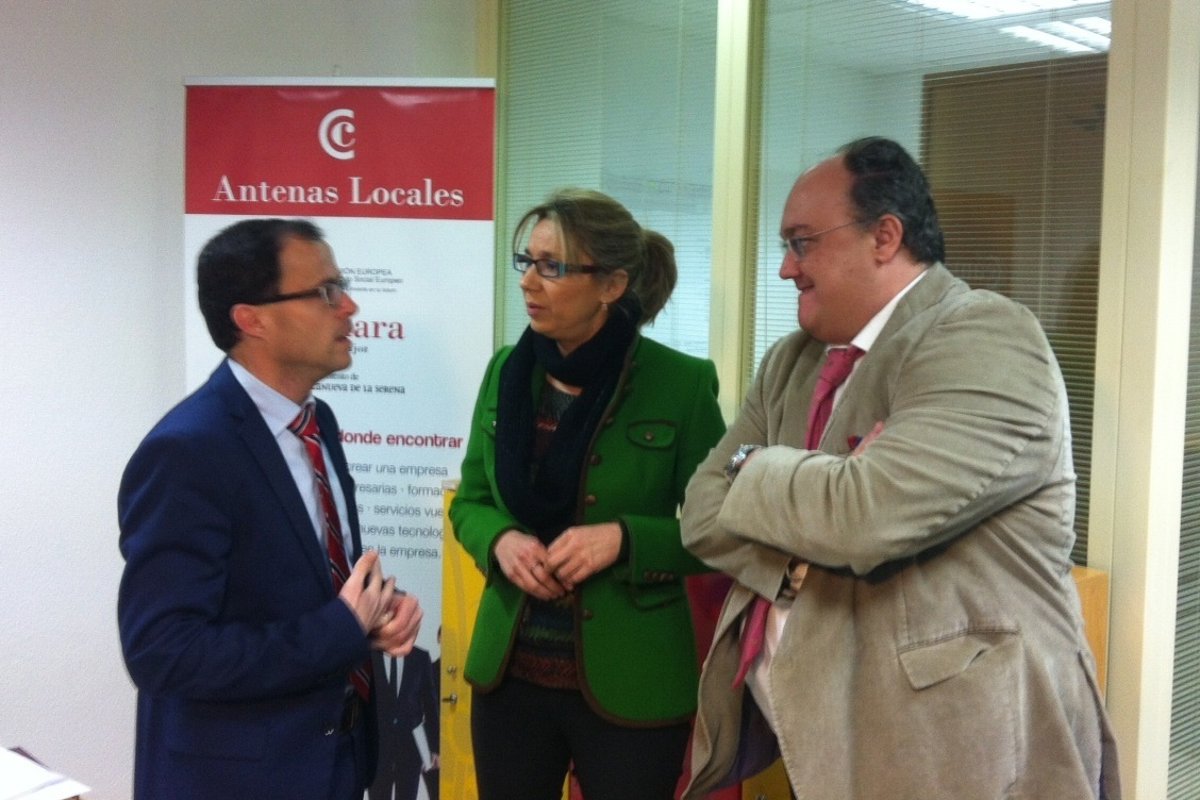 La vicepresidenta ha estado acompañada por el alcalde de Villanueva de la Serena, Miguel Ángel Gallardo, y el director de la Cámara de Comercio de Badajoz, Antonio Masa Gragera, durante su visita a este centro, ubicado en instalaciones municipales y que cuenta con personal del ayuntamiento y de la Cámara.