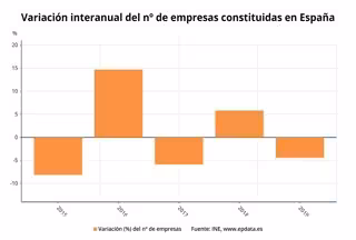 Con el retroceso de noviembre, la creación de empresas vuelve a tasas negativas tras haber encadenaso tres meses consecutivos de incrementos interanuales.