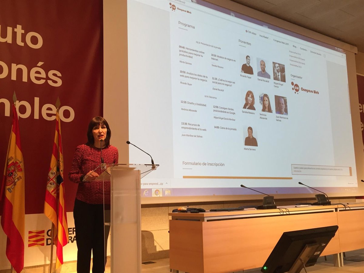 La directora gerente del INAEM, Ana Vázquez, ha sido la encargada de abrir la jornada, promovida por el Instituto Aragonés de Empleo y organizada por Congreso Web, una empresa conformada por cuatro emprendedores zaragozanos.