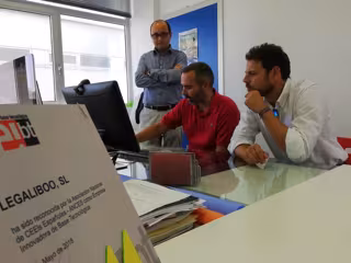 El director del Instituto de Fomento (Info), Joaquín Gómez, junto al director del Instituto de Crédito y Finanzas de la Región de Murcia (Icref), Andrés Torrente, han visitado este jueves la empresa innovadora Legaliboo, que ha generado desde su creación en 2015 más de 2.500 documentos legales y contratos personalizados desde su plataforma 'on line'.