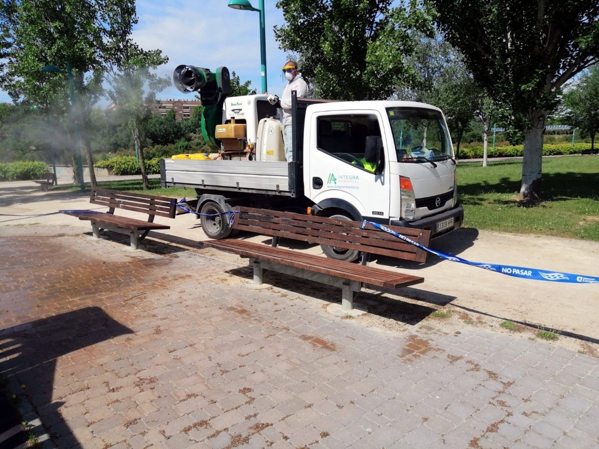 La empresa zaragozana Integra Ambiental está realizando, sin coste para el Ayuntamiento, desinfecciones en distintas zonas verdes de la ciudad de Zaragoza desde el inicio de esta semana.