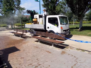 Nebulizador de la empresa zaragozana Integra Ambiental desinfectando en distintas zonas verdes - AYUNTAMIENTO DE ZARAGOZA
