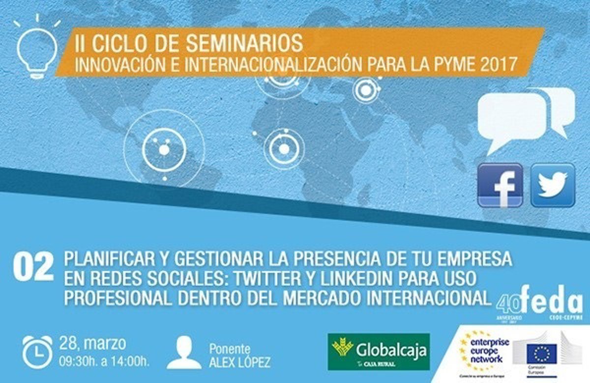 La Federación de Empresarios de Albacete (Feda) ha programado para este martes, día 28, una jornada titulada 'Planificar y gestionar la presencia de tu empresa en redes sociales: Twitter y Linkedin para uso profesional dentro del mercado internacional', y que está destinada a que los empresarios de la ciudad castellano-manchega "consoliden su marca a nivel internacional, busquen clientes en nuevos mercados y generen nuevas estrategias de negocio".
