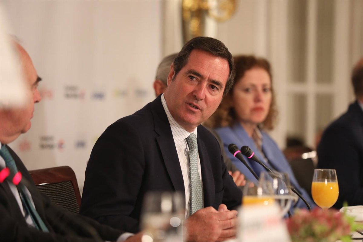El presidente de la CEOE, Antonio Garamendi, durante su intervención en los Desayunos Informativos de Europa Press en Madrid el 9 de octubre de 2019, - Marta Fernández Jara - Europa Press
