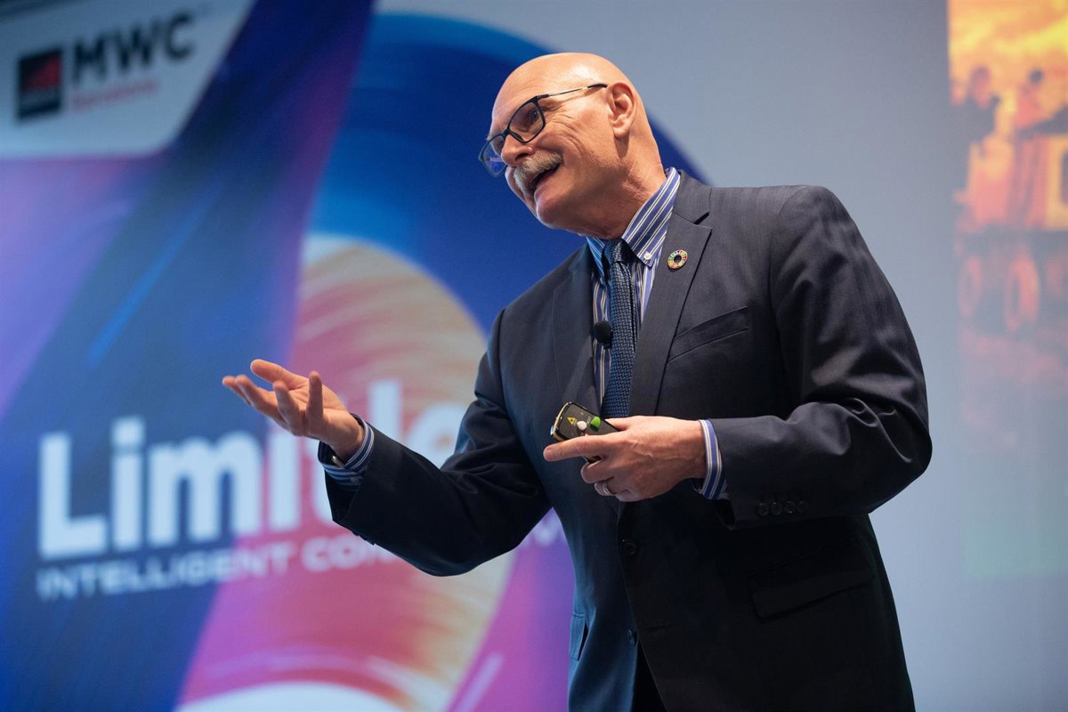 El consejero delegado de la GSMA, John Hoffman, en la presentación del MWC 2020. - DAVID ZORRAKINO - EUROPA PRESS