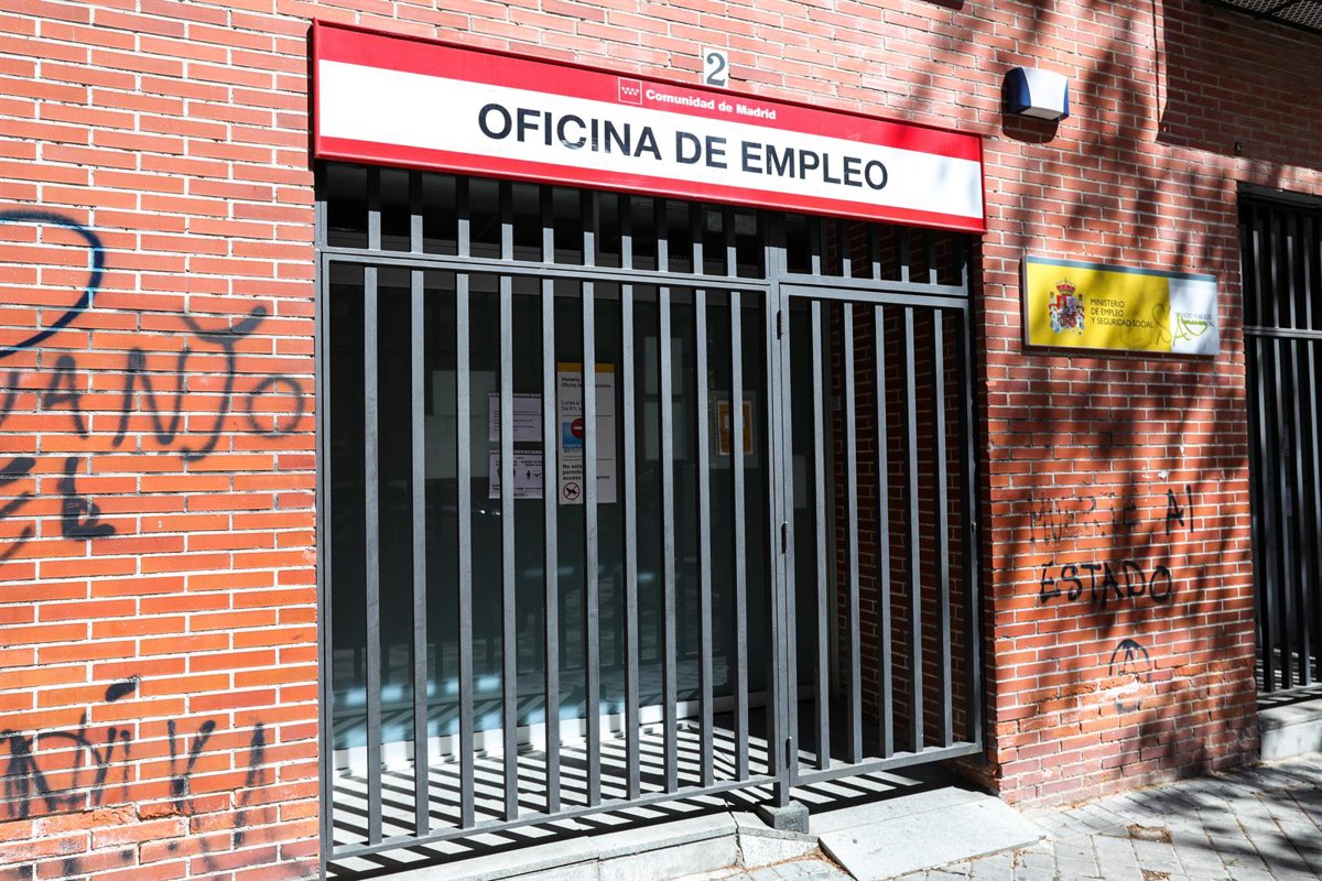 Rejas en las puertas de una Oficina de Empleo cerrada el día en el que, según datos del Ministerio de Trabajo y Economía Social publicados este jueves, el número de parados registrados en las oficinas de los servicios públicos de empleo (antiguo Inem) s - Jesús Hellín - Europa Press - Archivo