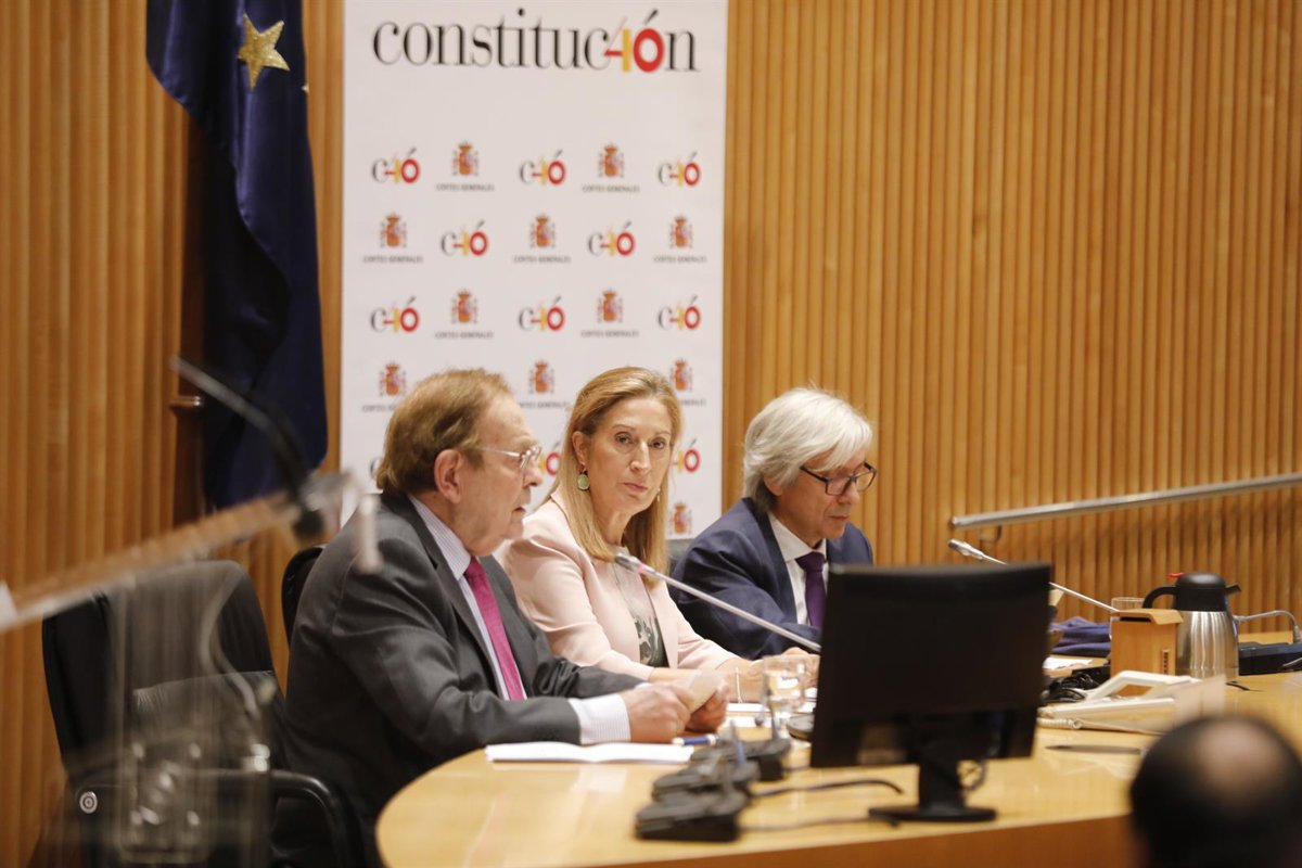Pastor ha acompañado al presidente de la AESP, Ramón Tamames, durante la inauguración de este simposio, celebrado en la Sala Ernest Lluch del Congreso, quien ha defendido que "cuanta más relación haya entre el sector público y el privado, mejor funcionan los servicios públicos".