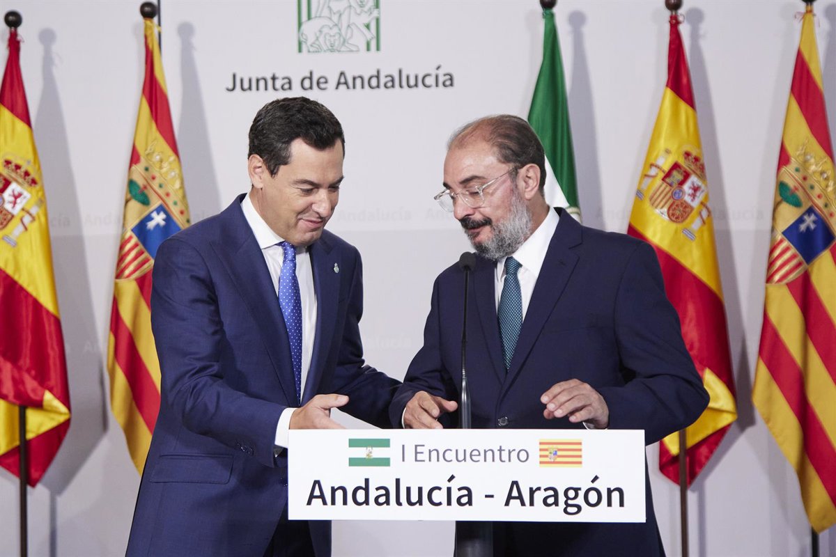 Esta ha sido una de las principales conclusiones de la reunión que han mantenido este jueves en el Palacio de San Telmo de Sevilla los presidentes de Andalucía y de Aragón, Juanma Moreno (PP) y Javier Lambán (PSOE), respectivamente.