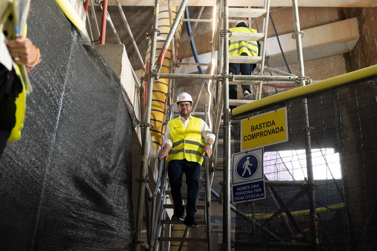 El presidente de la Generalitat, Pere Aragons durante su visita a las obras de la futura estación de Sarri de la L9 del Metro, a 14 de julio de 2023, en Barcelona, Catalunya (España). La tuneladora del tramo central de la línea 9 del metro estuvo once - David Zorrakino - Europa Press