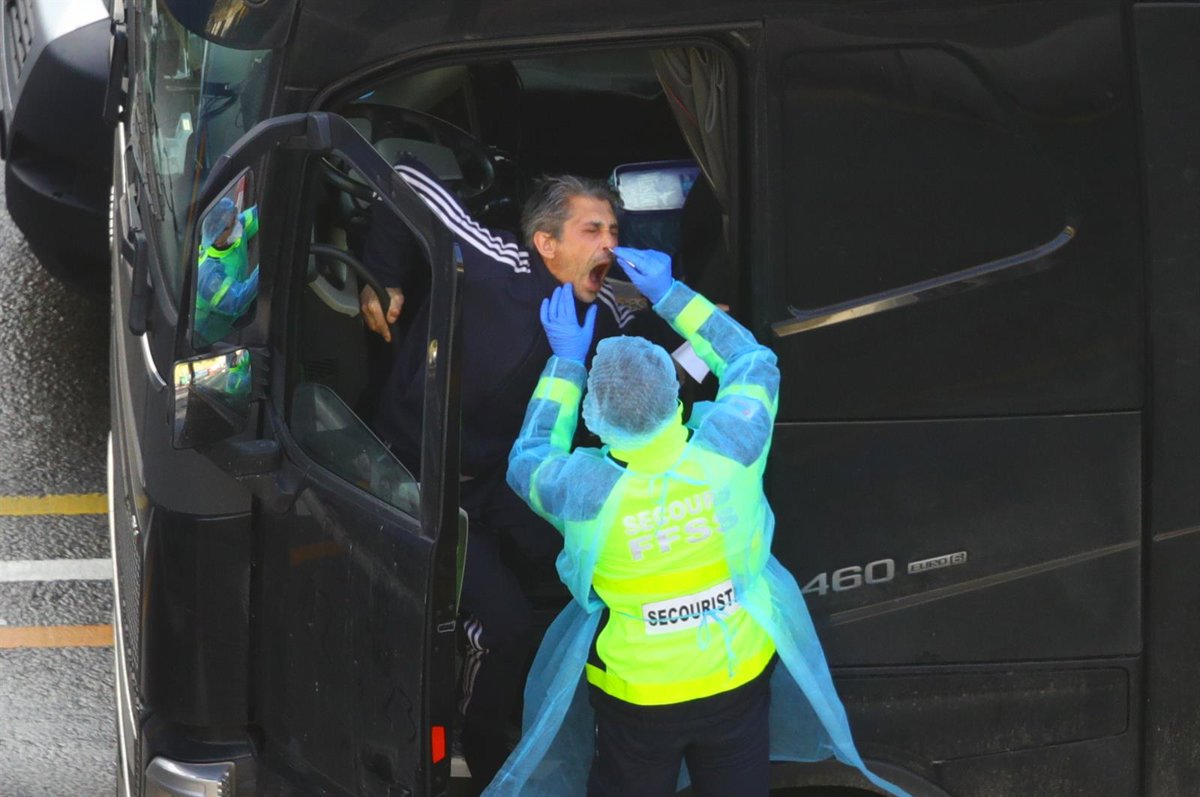 Un conductor de un camión se somete a una prueba PCR - Aaron Chown/PA Wire/dpa - Archivo